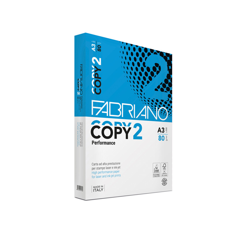 La carta per fotocopie Copy 2 Fabriano di colore bianco di alta qualità che offre elevate prestazioni sia con tecnologia Laser, Fax, Fotocopiatrici, Getto d'inchiostro. 100% pura cellulosa sbiancata con processi ecologici certificata ECF (Elemental Chlorine Free). Dotata di una garanzia di lunga durata (ISO 9706). Ottimo punto di bianco. Certificazione: ECF (Elemental Chlorine Free) Acid free Garanzia di lunga durata (ISO 9706). Ideale per fotocopie e stampe laser o inkjet.