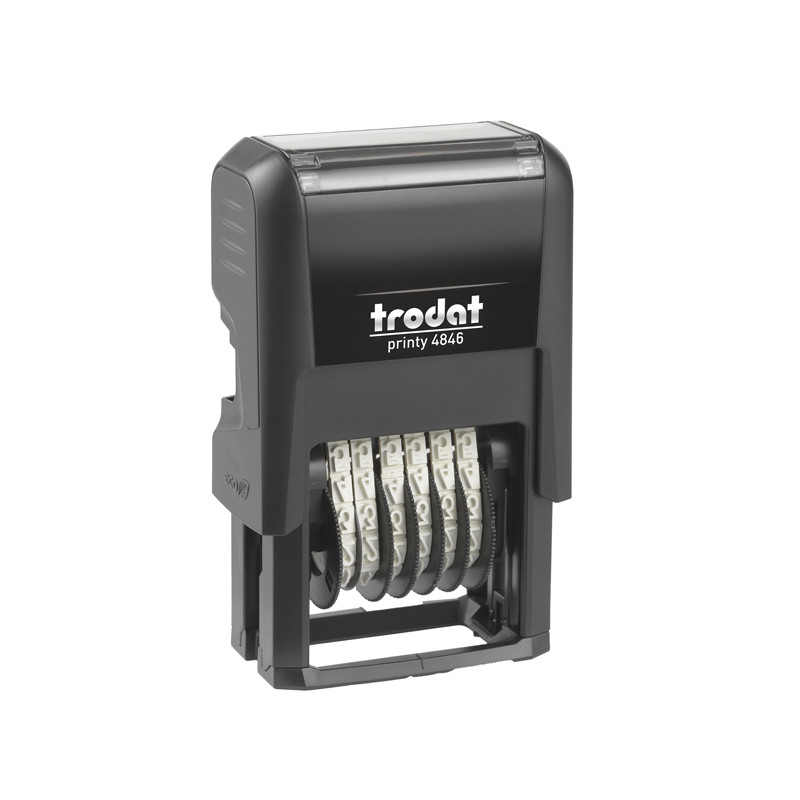 Timbro numeratore autoinchiostrante a 6 colonne da 4mm. Cartuccia inchiostro 6/4911. Dotati di cartuccia d'inchiostro con “alucce” e copertura delle bande* per mantenere le dita pulite, oltre al design premium e moderno della serie Printy 4.0. Questi timbri sono anche environmentally friendly, in quanto sono compensati dal punto di vista climatico e sono destinati a ricevere l'Ecolabel Austriaco. Per adattarsi meglio alle esigenze del lavoro moderno il polinome 4822 è stato aggiornato con nuovi testi.