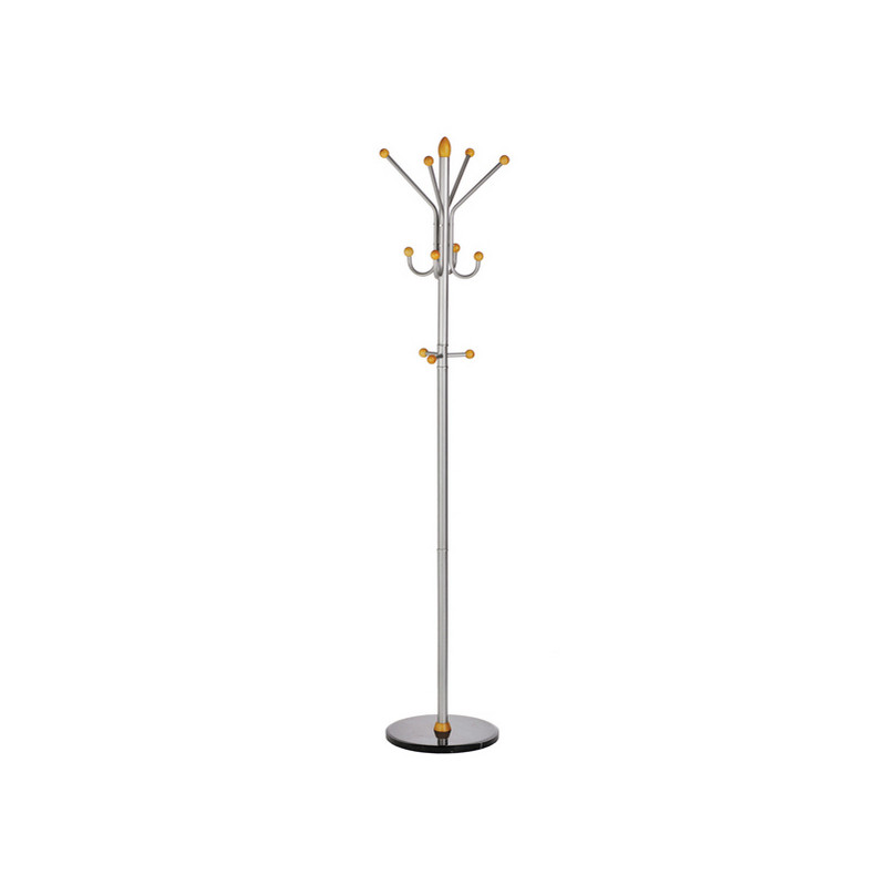 In metallo satinato colore argento con base in marmo- 4 pomelli superiori, 4 pomelli bassi e 3 pomelli per accessori e portaombrelli. Altezza 185cm, base 40cm.