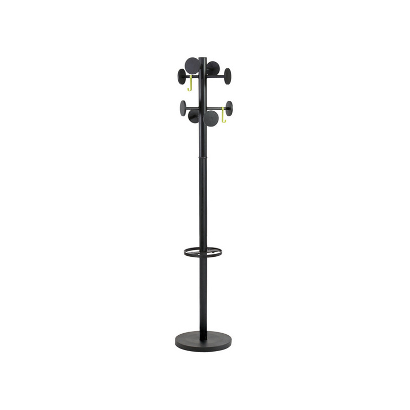 Appendiabiti dalla struttura in metallo e abs con base appesantita. Dotato di 8 supporti abito, 2 ganci per accessori e portaombrelli con vaschetta raccogligoccia. Dimensione: °37x175cm. tubo °38mm