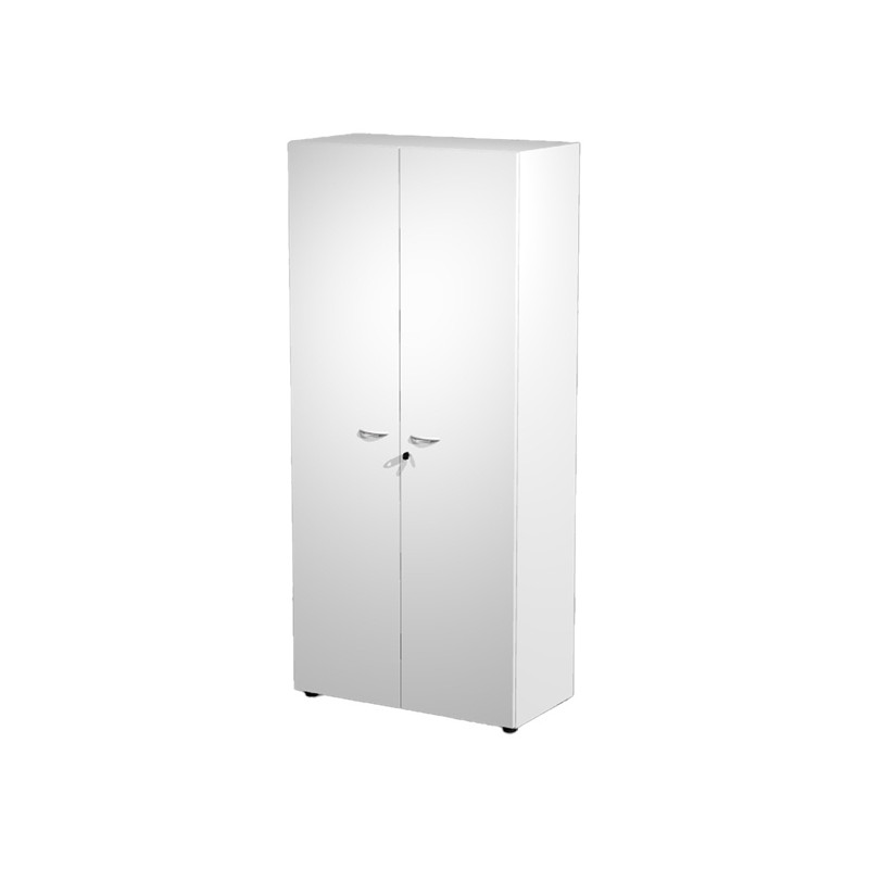 Armadio a 2 ante battenti alte con serratura. 3 ripiani spostabili + 1 fisso. Dimenzioni: L90 x P45,8 x H200 cm. Linea di armadi componibile particolarmente robusti e stabili, costituiti da struttura alta 200cm e completabili con sopralzo alto 40cm. Grande profondità di 46cm e larghezza di 90 cm. Struttura spessore 18mm. Lato posteriore rifinito da ambo i lati con pannello rigido in spessore 10 mm. Ripiani interni in sp. 25mm. Piedini regolabili per la massima stabilità.