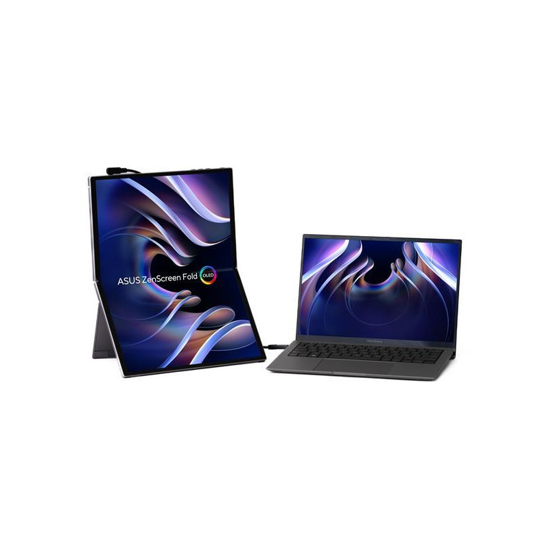 Monitor portatile ASUS ZenScreen Fold OLED MQ17QH - Pannello OLED QHD da 17,3 pollici (2560x1920), tecnologia di piegatura con cerniera a goccia d'acqua, DisplayHDR™ 500 True Black, 100% DCI-P3, doppia USB Type-C®, mini-HDMI,® jack per cuffie, foro per treppiede, cavalletto, FSC