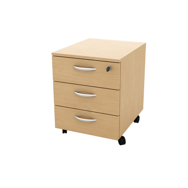 Cassettiera a 3 cassetti su ruote. Serratura sul primo cassetto, guide metalliche. Dimensioni utili dei cassetti: L31,8 x P38,3 x H10,9cm. Dimensione totale: L41 x P50 x H52,2cm. Colore struttura e dei cassetti: faggio. Fornita in kit DA ASSEMBLARE.