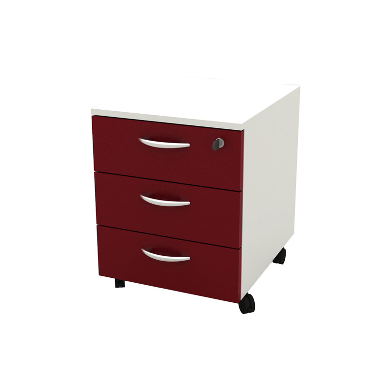 Cassettiera a 3 cassetti su ruote. Serratura sul primo cassetto, guide metalliche. Dimensioni utili dei cassetti: L31,8 x P38,3 x H10,9cm. Dimensione totale: L41 x P50 x H52,2cm. Colore struttura bianca e dei cassetti prugna. Fornita in kit DA ASSEMBLARE.