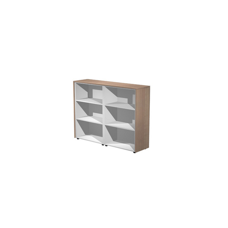 Struttura colore grigio alluminio. Top e fianchi finitura (sp. 14 mm) colore nero venato frassino e ciliegio arabis. Top, base e fianchi sp. 18 mm. Ripiani regolabili in altezza sp. 25 mm. Schiena sp. 10 mm. Piedini livellabili dall’interno. Disponibili moduli singoli e doppi con top finitura unico. I mobili possono essere allestiti a giorno o completi di ante con serratura. COPPIA Mobili medi a giorno, 4 ripiani spostabili. L162,8 x P43 x H119,8cm.