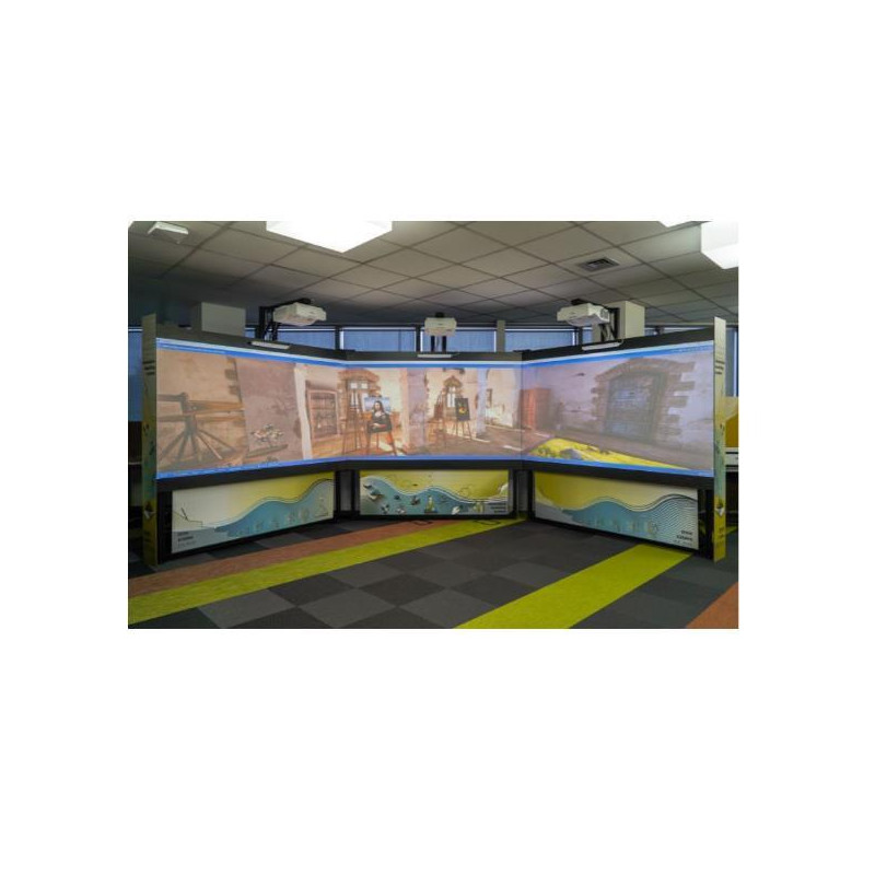 I tre schermi che compongono la soluzione possono essere posizionati con angolazioni diverse a seconda delle dimensioni della stanza nella quale Immersive Teaching System viene installato, adattandosi così perfettamente alle necessità della scuola.
