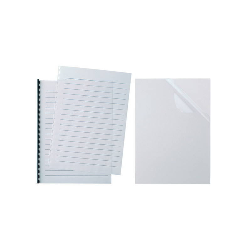 Confezione da 100 copertine trasparenti in PVC rigido adatte alle rilegature con spirale o dorsino rilegafogli. Resistenti allo strappo, garantiscono un'ottima protezione dei documenti. Formato 300x420mm.