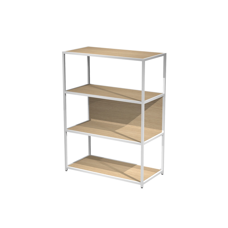 Libreria 4 ripiani Modular - 90 x 44 x 122 cm - struttura metal bianco - rovere