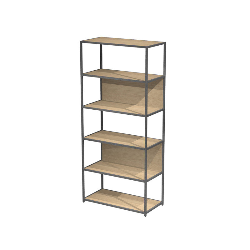 Libreria 6 ripiani Modular - 90 x 44 x 200 cm - struttura metal antracite - rovere