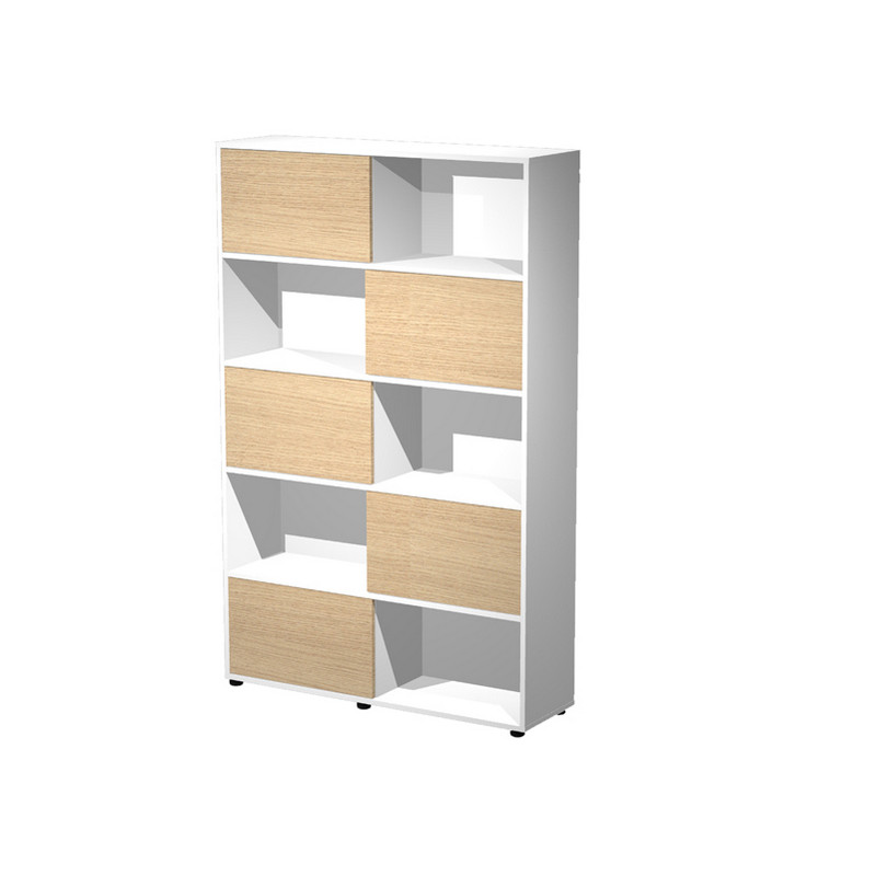 Nuovo Libreria alta Tetris - 5 ripiani - ante scorrevoli - 120 x 35 x191 cm - rovere/bianco - Artexport Visualizza ingrandito