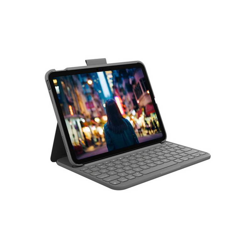 Logitech Slim Folio. Struttura tastiera: QWERTY, Linguaggio tastiera: Italiano, Passo del tasto: 1,8 cm. Compatibilità marca: Apple, Compatibilità: Slim Folio per iPad (A16) A16 Slim Folio per iPad (10ª generazione) iPad (10a gen) Slim Folio per..., Colore del prodotto: Grigio. Tecnologia di connessione: Wireless, Interfaccia dispositivo: Bluetooth. Alimentazione: Batteria, Capacità della batteria: 220 mAh, Durata della batteria: 3 anno/i. Sistema operativo mobile supportato: iPadOS
