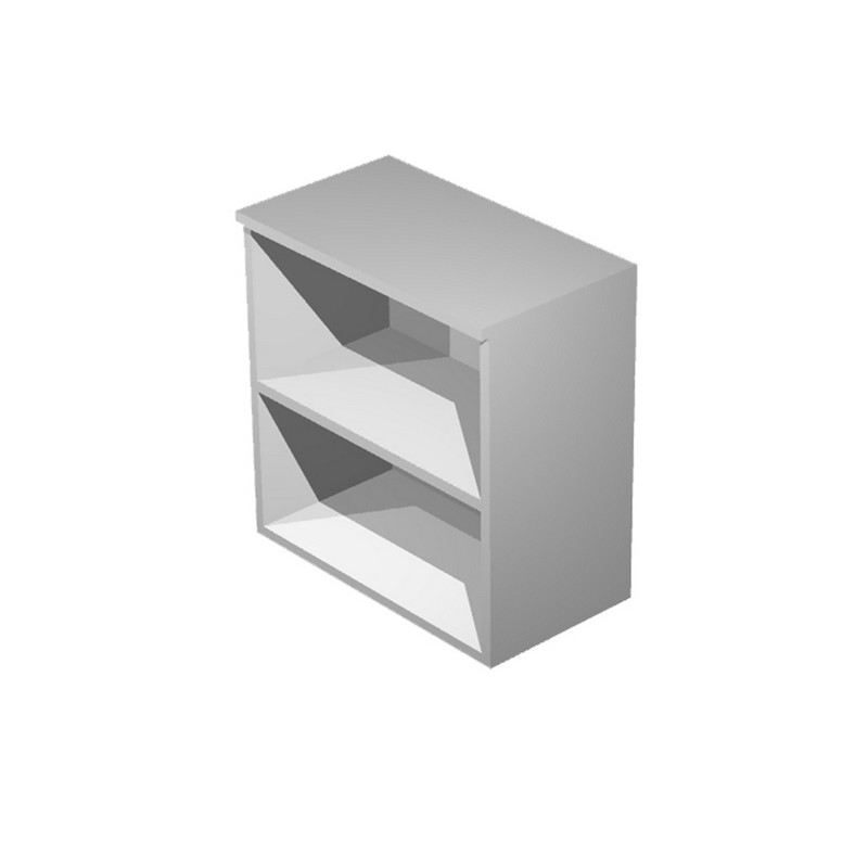 madi a giorno o completabili con ante dotate di serratura, disponibili in tre altezze. Top sp. 22mm, struttura sp. 18mm, ripiani riposizionabili da 18mm. Rifiniti posteriormente nello stesso colore della struttura in modo da poter essere utilizzati come pareti divisorie. Piedini regolabili in altezza. Ripiani regolabili in altezza con sistema di bloccaggio nella posizione desiderata. Mobile basso a giorno - 1 ripiano spostabile. Dimensioni: L80 x P35 x H72 cm