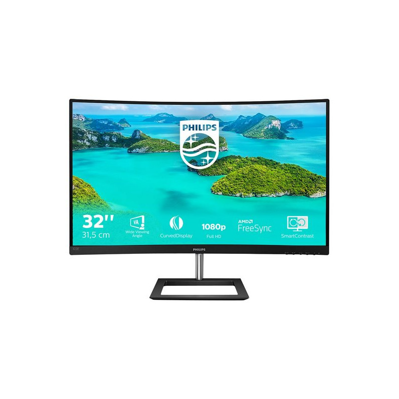 Il display curvo E Line da 32" offre un'esperienza davvero coinvolgente in un design elegante. Visualizza immagini nitide in Full HD e un'azione fluida con la tecnologia di sincronizzazione adattiva.