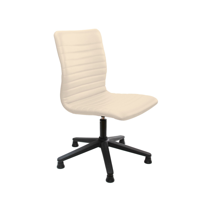 Poltrona direzionale girevole - sedile e schienale in multistrati di legno - elevazione a gas - meccanismo oscillante con blocchi. Rivestimento seduta in tessuto "PLUS - Eco Leather" idrorepellente, facile da pulire, senza flatati e flame retardant. Senza braccioli. Alt.tot.: 92-102cm; Prof.tot.: 70cm; Alt.schienale: 47cm; Larg.schienale: 50cm; Larg.seduta: 50cm; Prof.Sedile: 48cm; Altezza sedile: 44-54cm.
