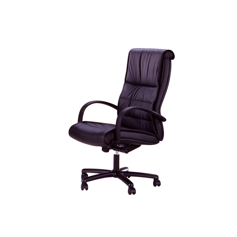 Poltrona presidenziale con schienale alto e movimento sincrono seduta<->schienale. Modulatore di spinta regolabile. Multiposizionatore di inclinazione. rivestimento in pelle smerigliata, interno in spugna hr alta densita'. Scocca in faggio multistrato. Base in alluminio pressofuso verniciato. Braccioli in poliuretano integrale con anima in acciaio. Sedile regolabile in altezza mediante pistone a gas (corsa 10cm). Portata max 150kg.misure: h 117-127cm- l 63cm- p 60cm. (h terra<->seduta 44-54cm). 21kg.