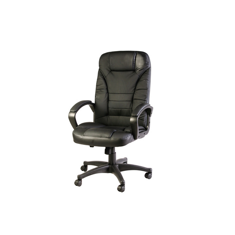 Poltrona a schienale alto rivestita in PU. Braccioli e base con ruote in nylon. Meccanismo oscillante bloccabile, manopola per la regolazione di tensione per il peso del corpo. Elevazione a gas. Ottimo rapporto qualità/prezzo. Larghezza fuori tutto 65cm; Larghezza seduta 50cm; Profondità 70cm; Altezza 108/118cm; H.seduta 42-52cm.