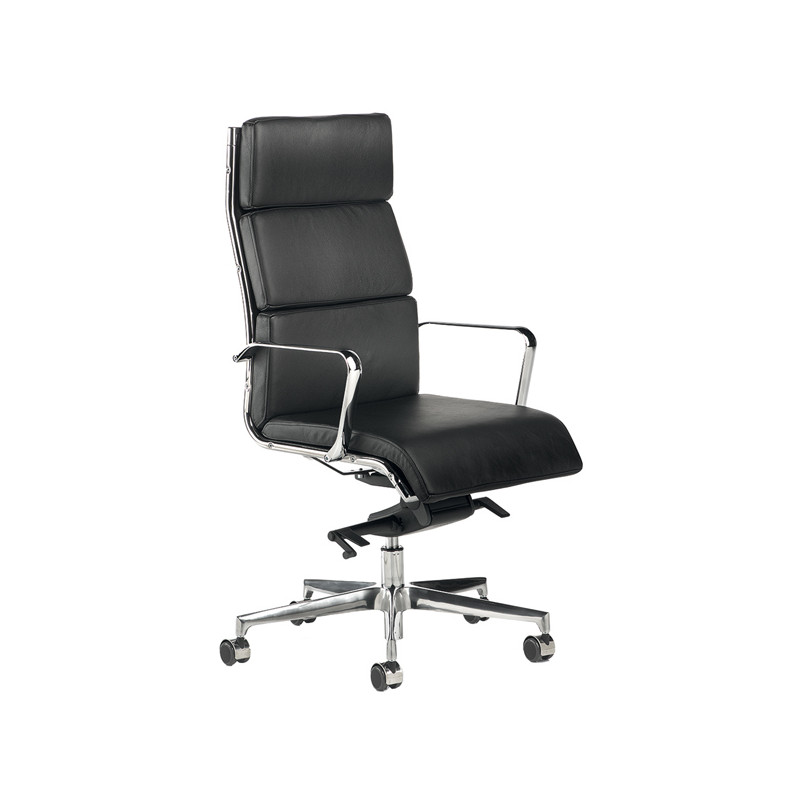 Poltrona direzionale girevole con elevazione a gas - meccanismo oscillante con 4 blocchi anti shock con fulcro avanzato. Braccioli inclusi (non rimovibili). Rivestimento seduta in tessuto "PLUS - Eco Leather" idrorepellente, facile da pulire, senza flatati e flame retardant. Alt.tot.: 105-116cm; Prof.tot.: 68cm; Alt.schienale: 60cm; Larg.schienale: 48cm; Larg.seduta: 50cm; Prof.Sedile: 50cm; Alt. sedile: 42-54cm.