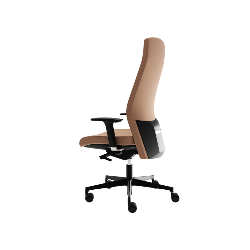 Poltrona direzionale girevole con elevazione a gas - meccanismo synchro con 4 blocchi anti shock - base nylon col.nero. Rivestimento seduta in tessuto "PLUS - Eco leather" PES 20% PVC 79% PU 1% idrorepellente, facile da pulire, senza flatati e flame retardant. Completa di braccioli regolabili. Alt.tot.: 129 - 139cm; Prof.tot.: 70cm; Alt.schienale: 87cm; Larg.schienale: 48cm; Larg.seduta: 48cm; Prof.Sedile: 47cm; Altezza sedile: 42 - 54cm.