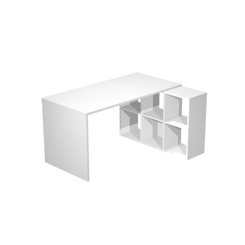 POSTAZIONE HOME-OFFICE L140 x P104 x H72,4cm. Tavolo 140x69cm - H72,4cm. Casellario 104x29,2cm - H 69,8cm. Realizzata in melaminico bilaminato antigraffio e antiriflesso (sp. da 16 a 22 mm). L’ampia superficie di lavoro (140 x 69 cm, sp. 22 mm) è sorretta da un lato da un solido fianco (sp. 22 mm) e dall’altro da una pratica libreria a 6 o a 9 caselle (sp. 16 mm). Le librerie sono completabili con set 2 cassetti, set 2 antine in melaminico e antina in vetro collocabili all’interno delle caselle. Ogni casella misura cm 32,5 x 32,5 ed ha una profondità utile di 29 cm.