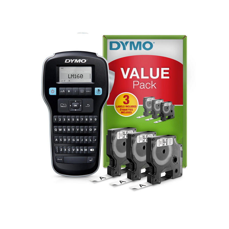 Promo Pack contenente Etichettarice LM 160+ 3 nastri D1 12mm nero/bianco. L'etichettatrice LM 160 utilizza etichette d1 da 6, 9 e 12 mm. tastiera qwerty. Formattazione rapida con tasti dedicati one-touch per grassetto, corsivo, sottolineatura, dimensione testo e testo in verticale. Etichette con 2 righe di testo, sia in verticale che in orizzontale. 1 font, 6 dimensioni di carattere, 8 stili di testo, 4 bordi e sottolineatura. 228 simboli e clip-art disponibili. Memoria dell'ultima etichetta stampata. Funzione di spegnimento automatico. Funziona con 6 batterie aaa o alimentatore opzionale (cod.37883)