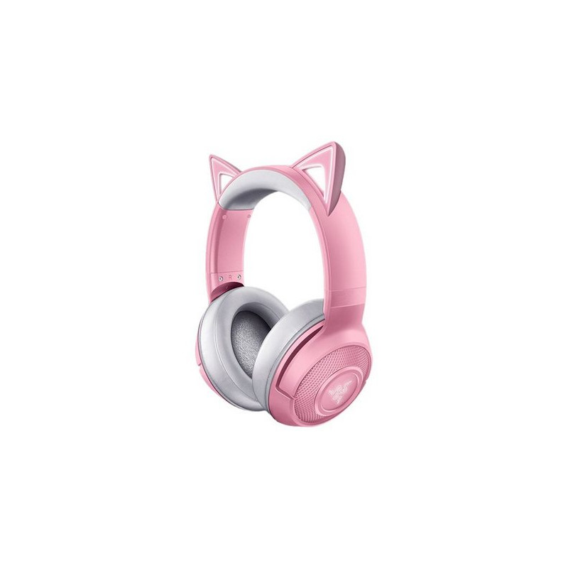Esprimi il tuo stile gattesco con le Razer Kraken BT Kitty Edition: le cuffie wireless Bluetooth con orecchie da gatto personalizzate ed effetti di luce, insieme a driver da 40mm con audio cristallino.